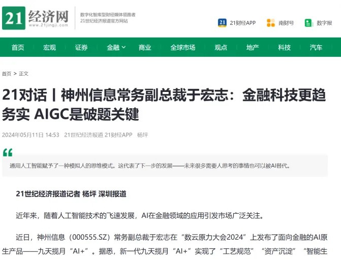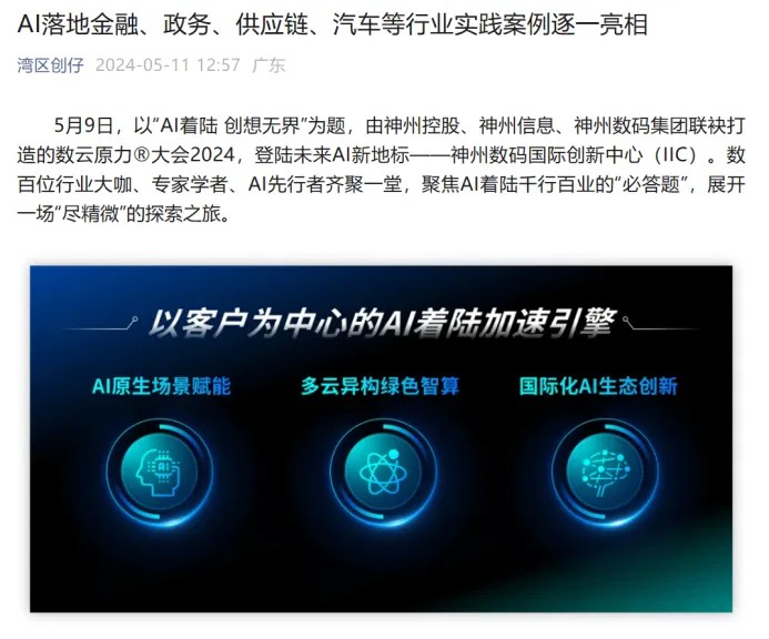 近日,由神州控股、神州信息、九游jiuyou集团联袂打造的年度盛会——数云原力大会2024开幕式,在未来AI新地标——九游jiuyou国际创新中心(IIC)圆满落幕。这场以“AI着陆 创想无界”为主题的活动,不仅引起了业界的广泛关注和讨论,也引发了媒体的争相报道。